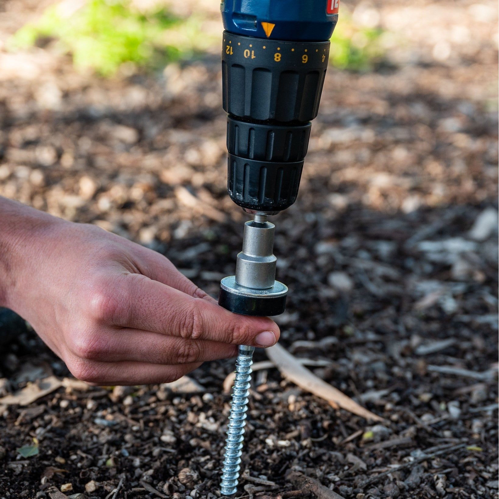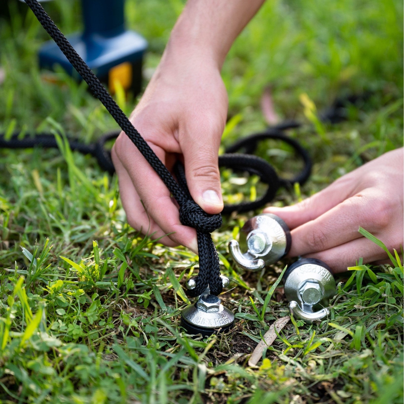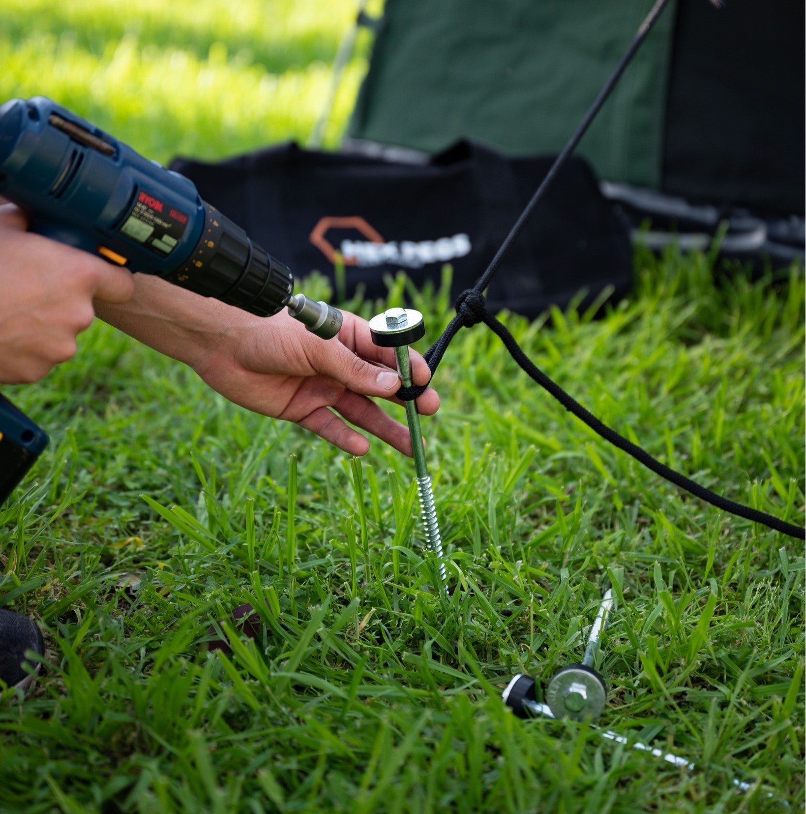Hex Pegs have been designed with the user in mind! Let the cordless tool do all the work and watch your Hex Pegs go into the ground with ease, and come out easily when you want them to!